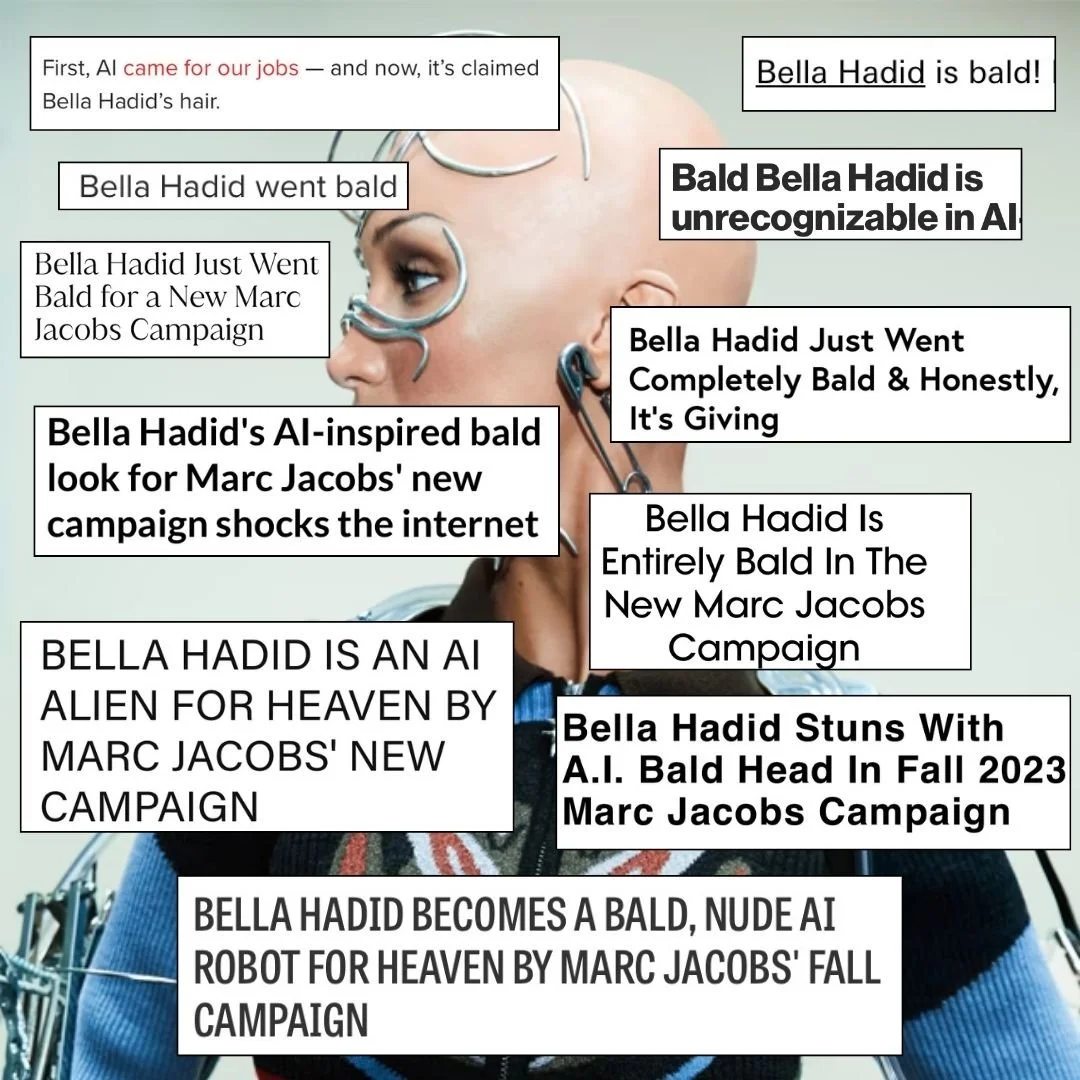 When news articles featuring Bella Hadid wearing a bald cap referred to her as an AI alien robot, I knew I wanted to write something about it.